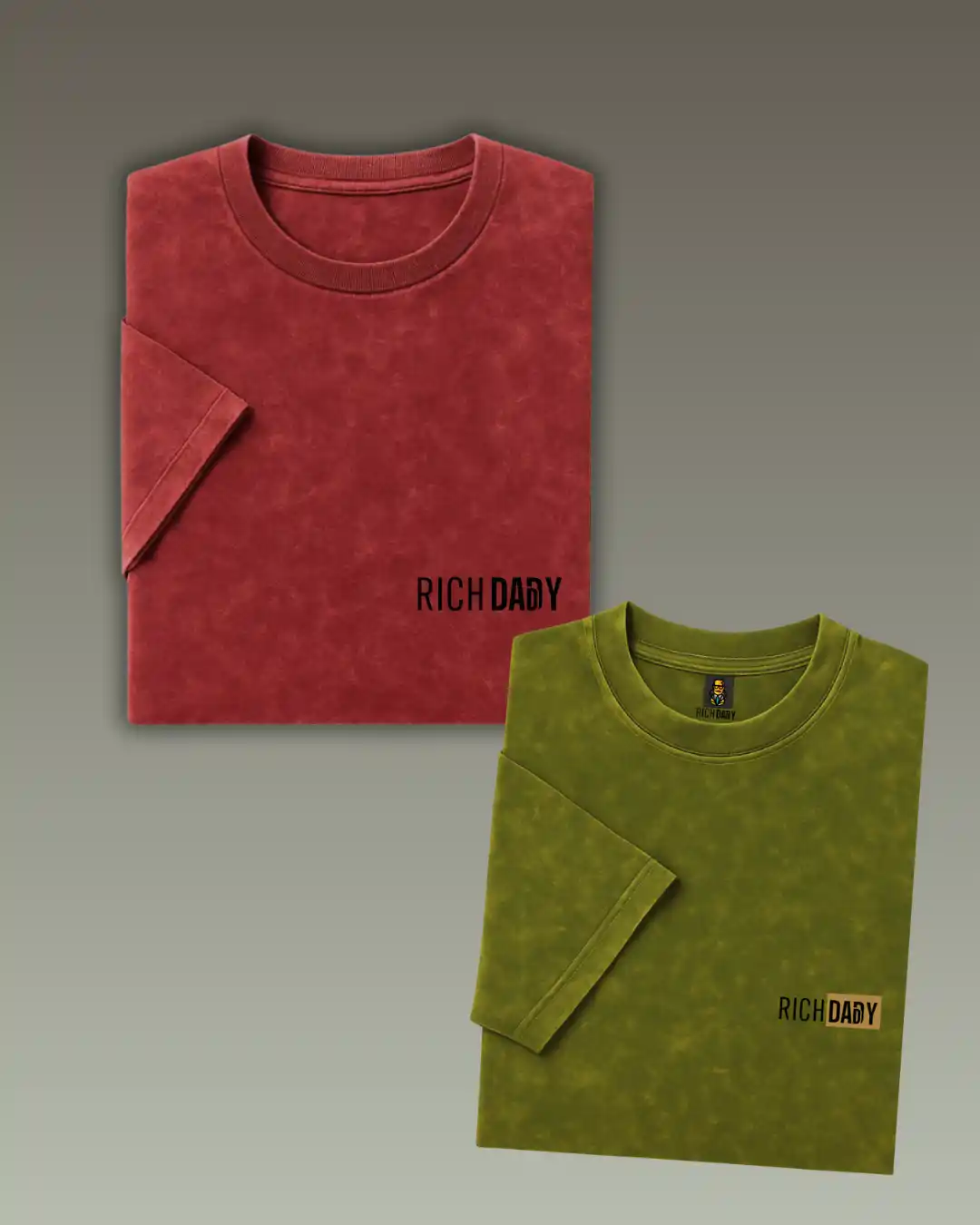 Premium Five Sleeve T-Shirts | 100% Cotton | 240 GSM | Unisex | COMBO | Acid Wash Maroon+ Miltery Green| by RICHDADDY