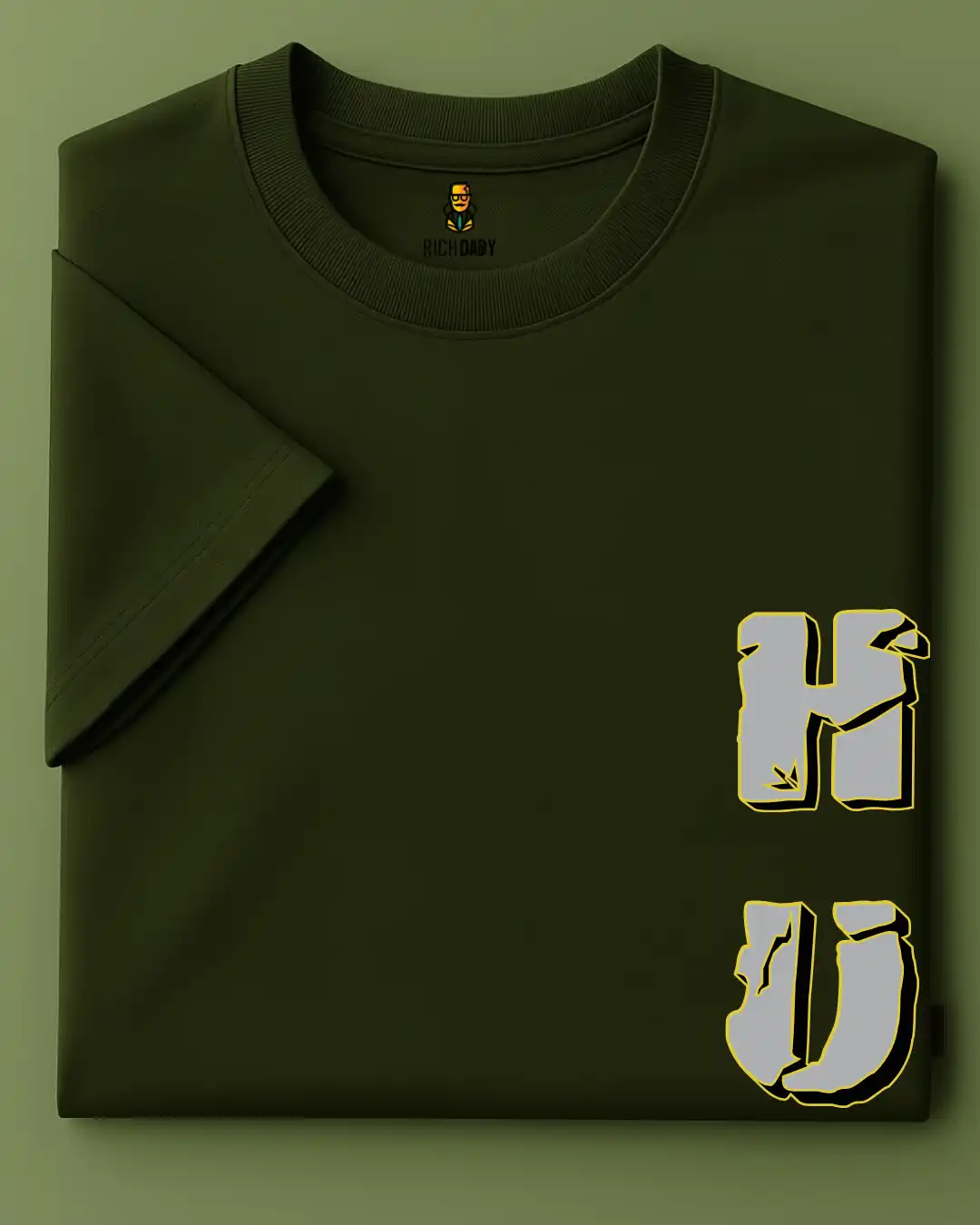 Premium Five Sleeve T-Shirts | Back Printed | 100% Cotton | 240 GSM | Unisex |Miltery Green |HULK |by RICH DADDY