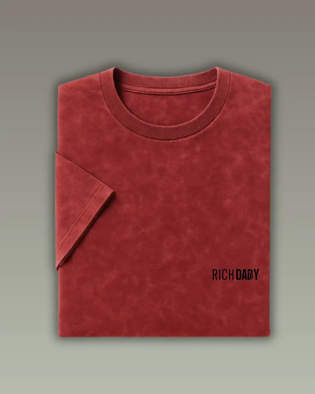 Premium Five Sleeve T-Shirts | 100% Cotton | 240 GSM | Unisex | Acid Wash Maroon | by RICHDADDY